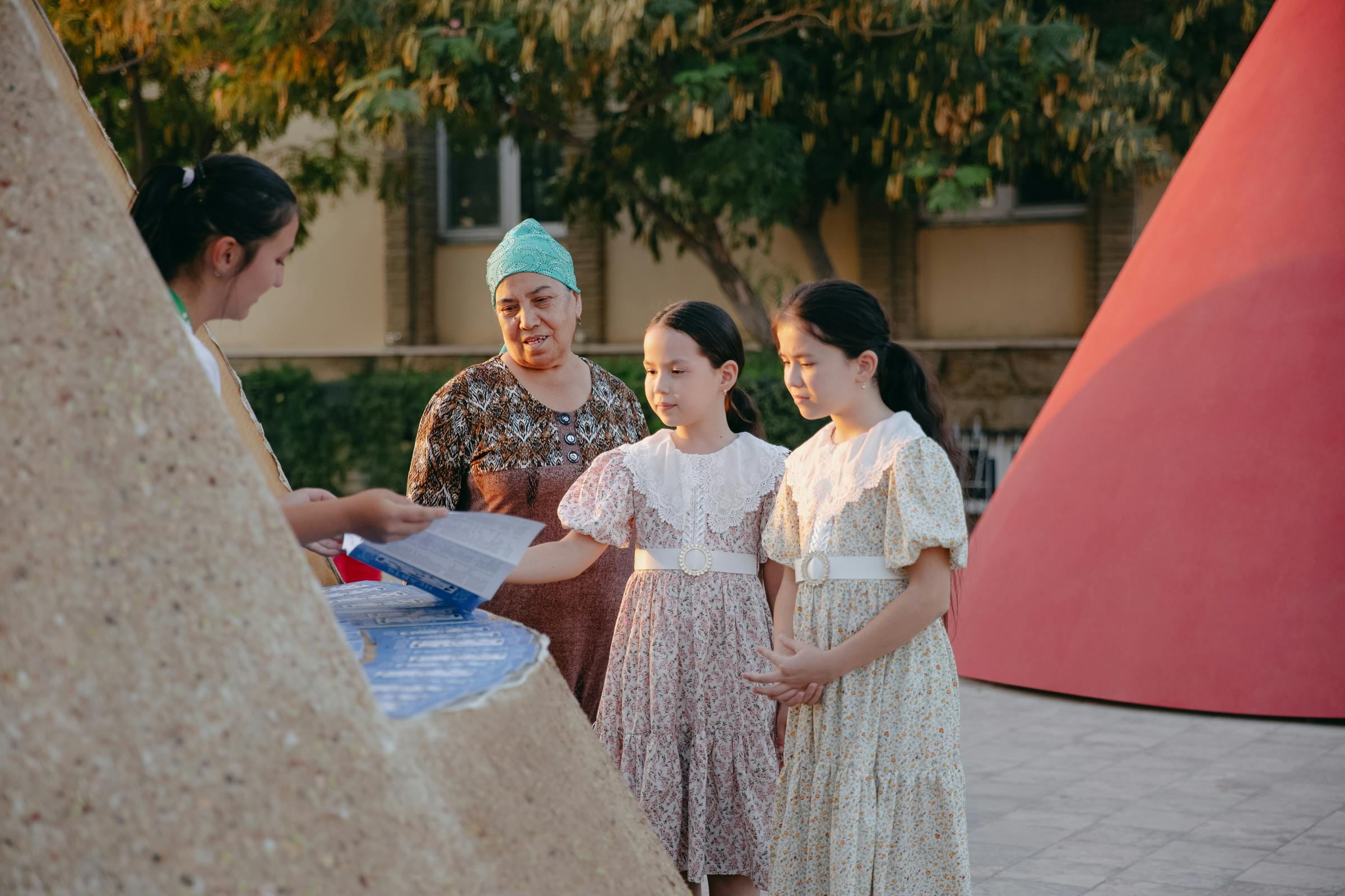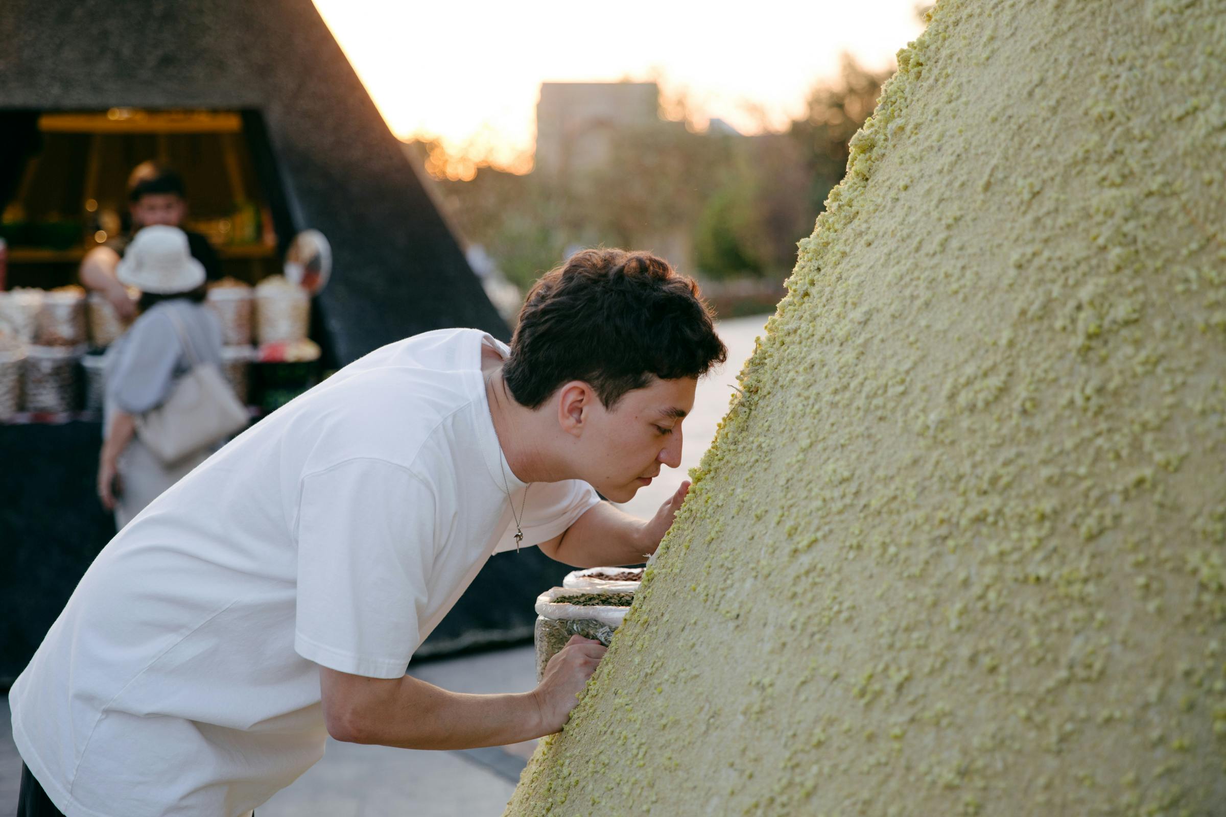 The structures quickly became sites of exchange and play. A blind passerby returned with fifteen companions to identify the cones by scent. A guide began weaving folk knowledge of medicinal herbs into her tours. Bees rested on clover blossoms, cats licked paprika walls.